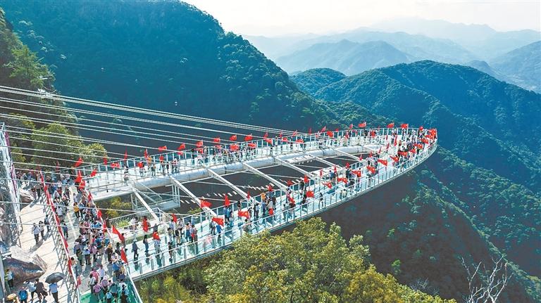 本报讯 刚刚过去的中秋国庆假期,德化县各大景区人潮涌动,游客以家庭或亲友为单位,踏秋、赏景,惬意出游,尽享初秋休闲之旅。