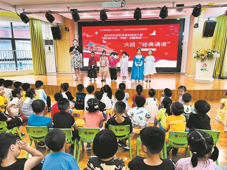 本报讯 近日,泉州市丰泽区泉秀实验幼儿园开展了丰富多彩的活动,孩子们用不同的方式表达对祖国的祝福。
