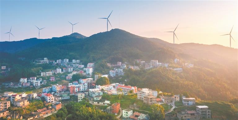 近年来,永春县外山乡云峰村立足地理位置特殊、生态环境优美、历史人文丰富等优势,以及高山风能发电的“大风车”景观,大力发展特色乡村旅游,带动多个产业兴起,乡村面貌得到极大改善,村民生活水平持续提高,有力推进乡村振兴。 (康庆平 陈小阳 摄)