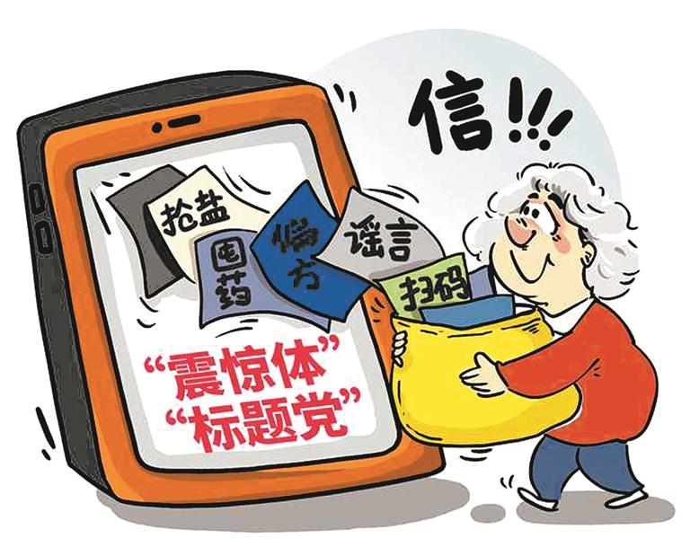 《法治日报》记者近日调查采访发现,“震惊体”“标题党”谣言文章成为老年人在社交群转发较多的内容之一,大多与养生、健康等话题相关。这个问题亟须引起关注。 (视觉中国)