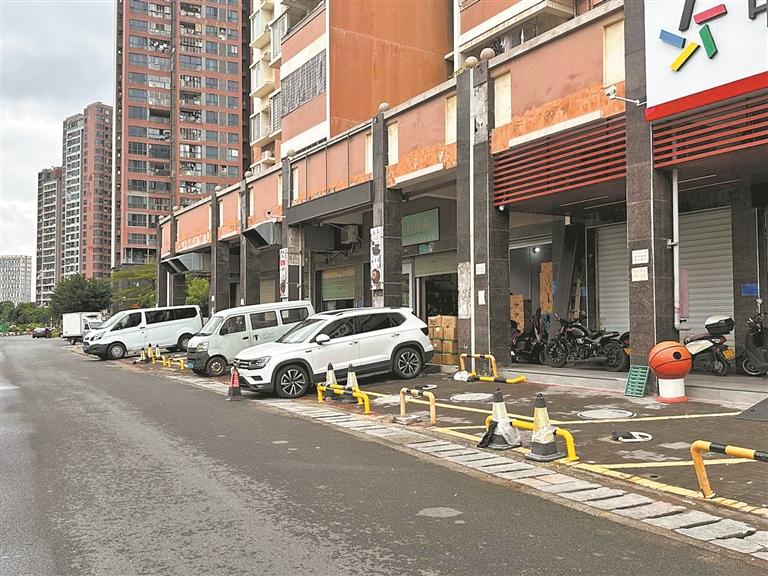 晋江市池店镇综合执法队相关工作人员告诉记者,他们核实到,该小区这两排店面门口的空地在小区的红线范围内,由小区自行管理,且此前施画停车位的方案已经过小区业委会讨论通过。