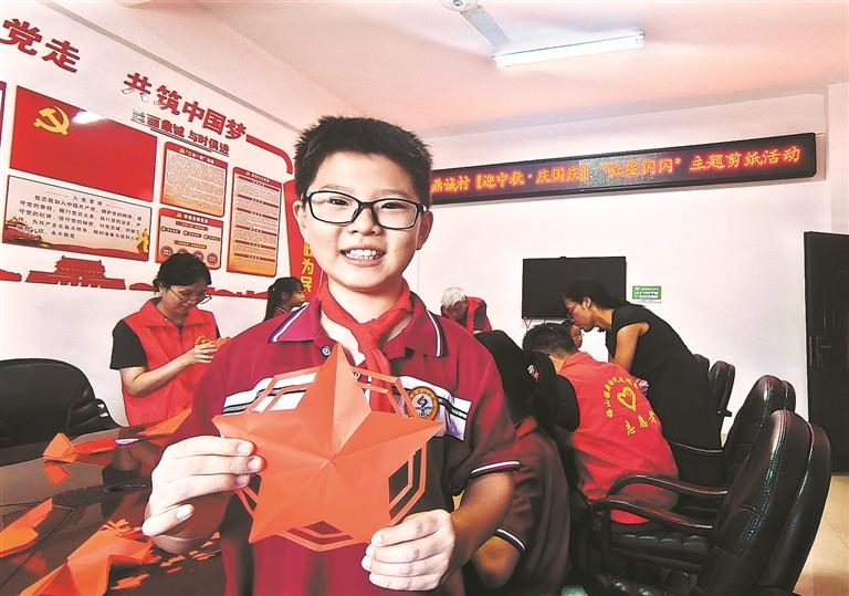 南安通过举办一系列形式丰富、趣味十足的欢庆活动,庆祝国庆佳节,激发群众爱国主义情怀。图为南安梅山镇鼎诚村新时代文明实践站和芦山小学部分学生一起开展迎中秋·庆国庆“红星闪闪”主题剪纸活动。(黄玮虹 摄)