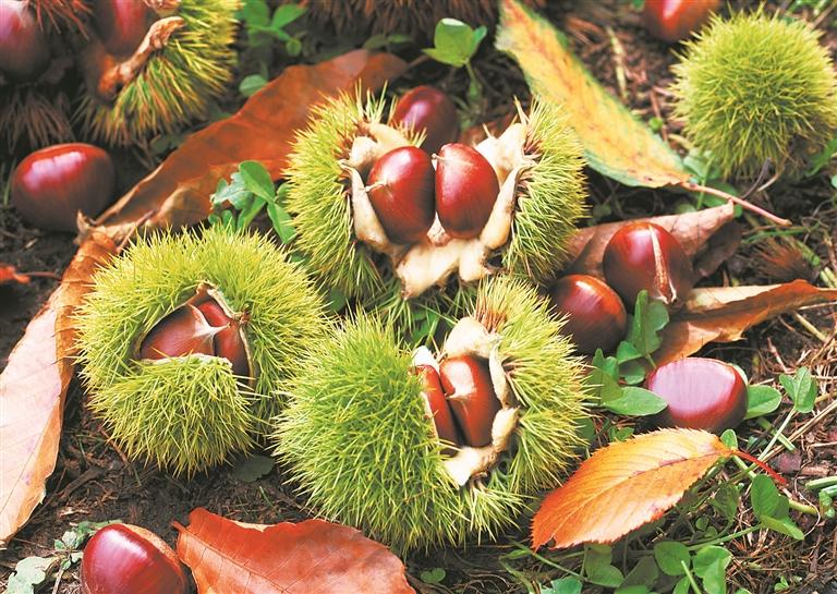 此刻,我站在夜市的栗子摊前。在哗啦哗啦的翻炒声中,甜香也慢慢飘出。我一口口咀嚼着酥脆的栗子,试图唤醒那些美好的往昔。那是我与亲人在栗林间荡漾的欢声笑语,是他们烹制应时美味所传递的温情滋味。那满满一筐的栗子,将秋日的风韵与甜润的回味,镶嵌在时光的镜头里。