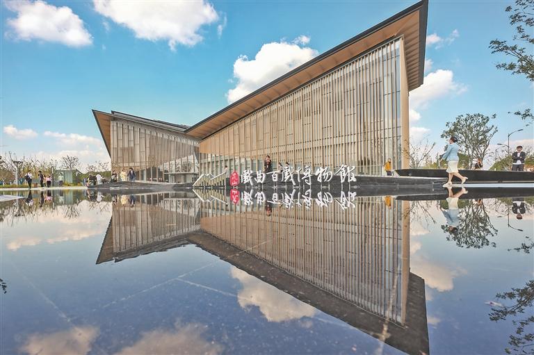 10月11日,位于江苏苏州昆山巴城镇的戏曲百戏博物馆开馆,旨在全面展示新中国戏曲事业取得的成就和中国现存348个戏曲剧种的真实状况,全力搭建戏曲保护、传承、展示的平台。近年来,昆山不断加强优秀传统文化保护传承和创新发展,持续擦亮文化“金名片”。图为戏曲百戏博物馆外景。 (中新)