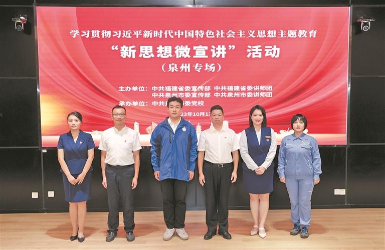 昨日,由省委宣传部、省委讲师团、泉州市委宣传部、市委讲师团主办,泉州市委党校承办的第二批主题教育“新思想微宣讲”活动走进泉州市委党校。来自福建省“福小宣”青年宣讲团和泉州市“福小宣·‘泉’民讲”宣讲团的6位宣讲员,用亲历故事和身边典型展现我省、我市各领域各战线学习新思想、坚定跟党走、建功新时代的磅礴力量。□本报记者 张晓明 张九强 实习生 孙梦玲 文/图