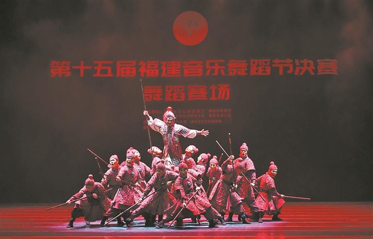 日前,由洛江区文化馆和泉州师范学院体育学院联合创作编排的原创舞蹈《俞大猷》荣获第十五届福建音乐舞蹈节节目奖三等奖、编导奖三等奖,这是洛江区文化馆首次参加并获奖的群众文化领域专业大赛奖项。据悉,《俞大猷》为纪念民族英雄俞大猷诞辰520周年创排,作品以英雄故事、抗倭壮举、爱国情怀为蓝本,彰显民族英雄情怀。图为《俞大猷》决赛现场表演。 (庄美莲 摄)