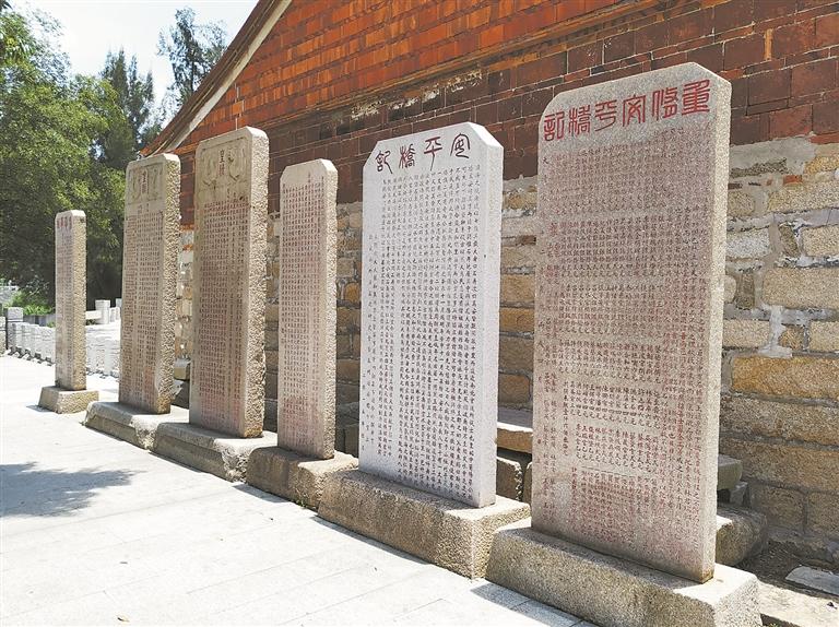 今年中秋国庆长假期间,不少游客在前往泉州崇福寺游玩时发现,该寺天王殿前的照墙上嵌着一方书有“松湾古地”的四字古碑刻。字体苍劲有力,但整体结构似又不够匀称,有威仪而无圆融。古碑上款写有“康熙辛卯冬”,下款则为“金浦蓝理书”。人们这才恍然大悟,原来此碑竟是出自康熙帝亲赐“所向无前”“勇壮简易”匾额的一代虎将蓝理之手呀!