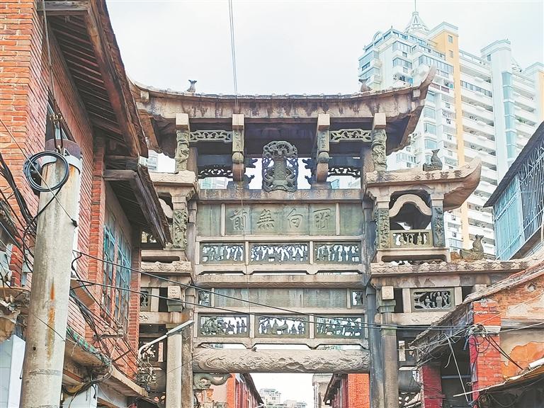 康熙帝对这位“破肚将军”也是恩眷极隆,特地御书“所向无前”及“勇壮简易”匾额赐之。后来更是将蓝理调来镇守天津这块临京重地。而蓝理也确实没让康熙失望,他在天津浚河引水、开灌稻田,使得粮食产量大增,纾缓了京师的用粮需求。康熙帝于是将其拓垦出来的150顷水田全都赐予他,名曰“蓝田”。康熙四十六年(1707年),在漳州岳口街立起了一座“勇壮简易”石牌坊。这座牌坊由十二根坊柱分隔成三间,气势恢宏。坊梁正中是镂雕的圣旨牌,上镌“御书”二字。主间匾额由六块青石组成,北面镌刻的是行楷大字“勇壮简易”,南面则为“所向无前”四字。这座石牌坊正是康熙帝对蓝理恩宠褒励的集中展示。对于蓝氏家族来说,也是一种无上荣耀。