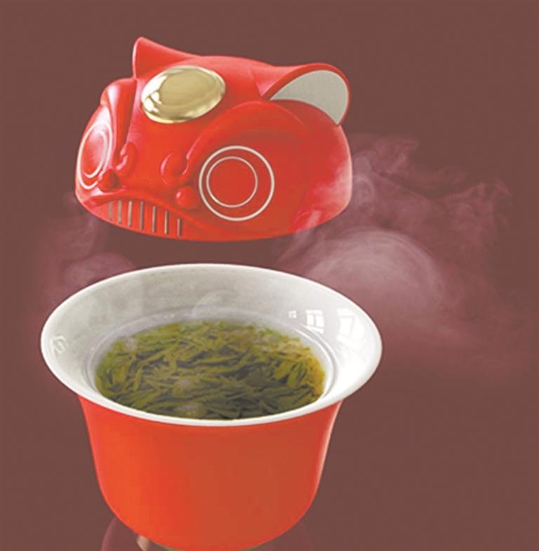 而一款名为《喜“狮”连连》的茶具也以明艳的中国红、圆润的质感吸引了茶具爱好者的关注。这款茶具是以中国的瑞兽狮子为原型,结合茶文化与福文化,运用人体工程学与力学设计的一款便携式茶器。茶具整体与狮子文化相呼应,主体颜色以红色路宝釉为主,外层为路宝工艺仿指纹设计,防滑的同时起到久用而不油腻的效果。内壁为光滑釉面,整体卫生环保易清洗。“之所以选择茶具为载体,是因为将茶叶与水置入盖碗之中这件事,像极泉州这个城市文化的包容性,世界各地的文化在这个城市扎根交流。”设计师孙培财表示:“茶具采用三点式抓取方式,更符合现代力学原理,狮嘴竖型过滤孔,过滤效果好,易清理,防堵效果佳。”