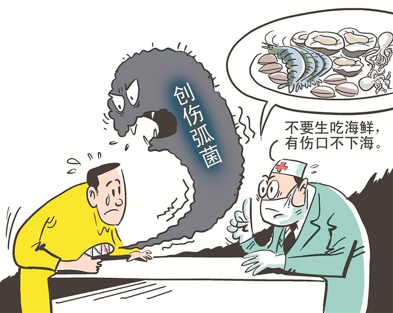 据介绍,创伤弧菌是一种生活在海洋里的细菌,或漂浮在海水中,或附着在海鱼、海虾、牡蛎等贝类、螃蟹、鲸鱼等海洋生物体上。
