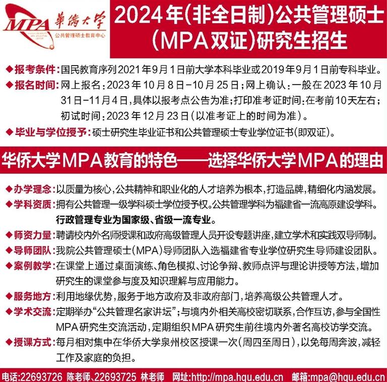 2024年(非全日制)公共管理硕士(MPA双证)研究生招生