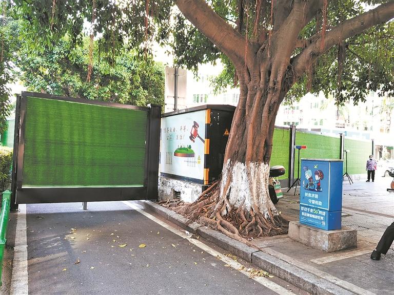 庄先生家住泉秀街阳光巴黎一期,16日上午8点左右,他从小区位于运通路的西门出来,准备骑电动车载孩子去上学,刚要拐入泉秀街时,就被一整排铁皮围挡挡住了去路。他只能折回,从泉秀街与刺桐路交叉口的红绿灯处过马路,来回多折腾了五分钟。