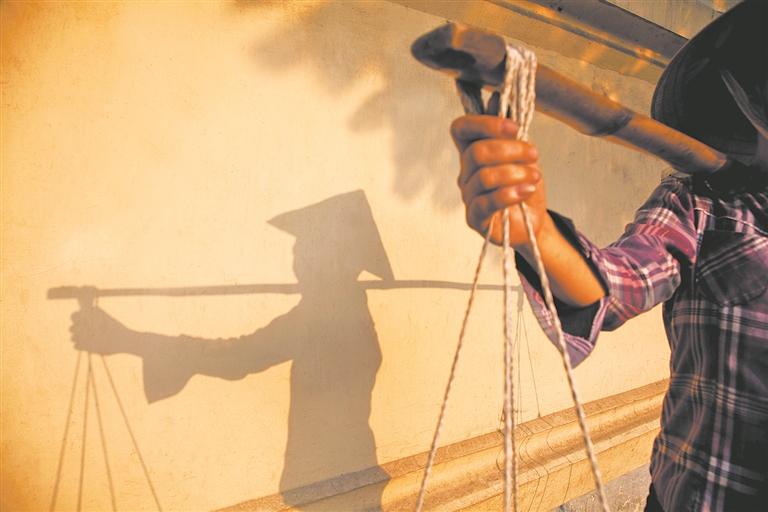 人们肩挑背驮,埋头黄土躬耕田野。扁担在握,诸活顺手,早晚赶路,壮胆防贼,竖着可挂斗笠帽子,横着可晾衣服汗巾。小小扁担凝聚着劳动者的智慧,也浸透着劳动者的汗水。