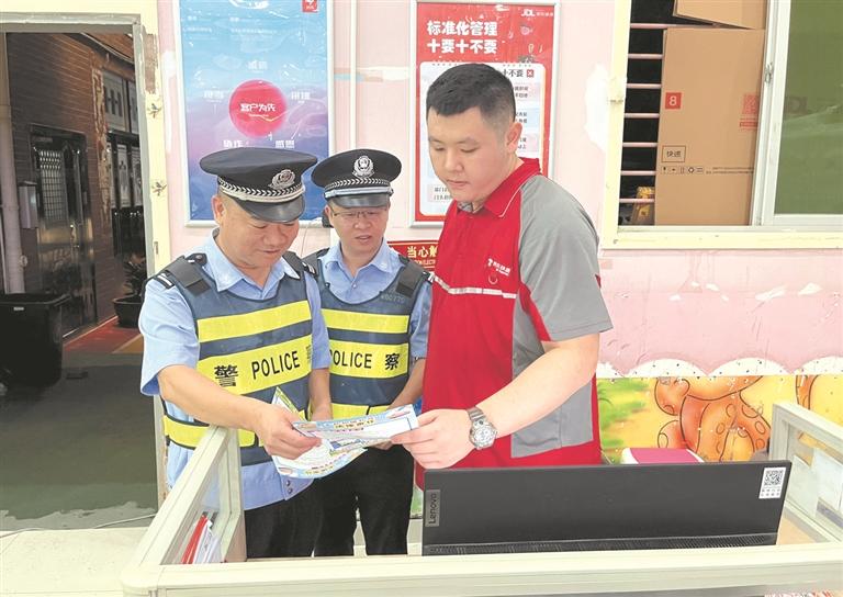 民警向快递小哥介绍相关法律法规