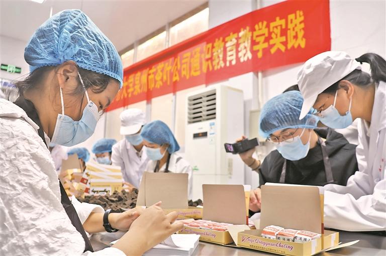 本报讯 (记者郭剑平 赖小玲 通讯员黄晓明 鲁玥彤 文/图)18日上午,泉州市茶叶公司与华侨大学举行通识教育实践教学基地签约揭牌仪式。今后,双方将以茶为桥,致力打造一个集“知识传授+现场实践+文化熏陶”于一体的特色实践教学基地,宣传非遗文化,推进文化传承。