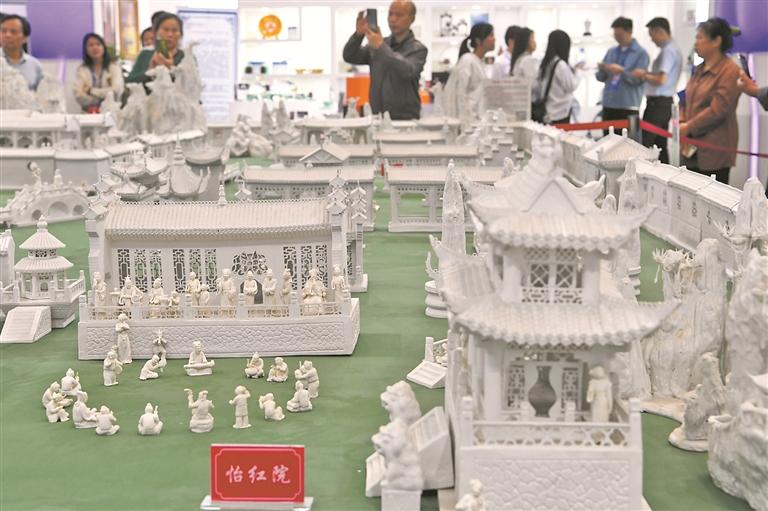 10月18日,2023中国景德镇国际陶瓷博览会在江西景德镇陶博城开幕。大会展览面积共13万平方米,主要分为“文化传承”“文化交流”“文化创新”三大板块,除陶博城近600家入驻企业之外,还吸引了400余家中外参展商。本届瓷博会将持续到22日,其间还将举办招商推介会、陶瓷文化论坛、陶瓷艺术展、艺术市集、专场拍卖等活动。图为人们在瓷博会现场欣赏展品《瓷造大观园》。 (新华)