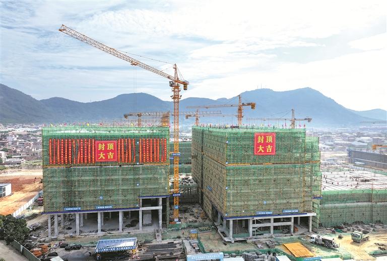 ?10月19日,记者拍摄的已部分封顶的泉州数字经济产业园标准园区B区项目。据悉,该项目由7栋研发车间和1栋员工宿舍组成,目前,已经封顶2栋,预计2023年12月全面封顶,2024年年底投入使用。