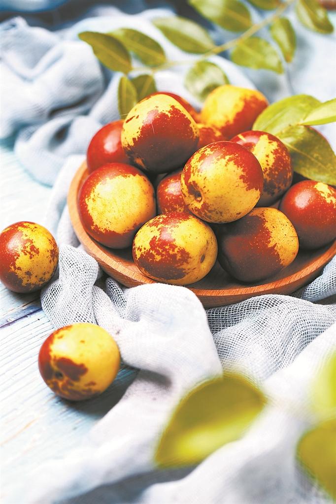 除了鲜食之外,与不少水果一样,冬枣也适宜拿来制成果汁、果酱、果泥等食物,或是作为烹制热菜汤饮的食材。对此,私房菜大厨陈方琳介绍,在深秋时节,若是感觉食欲不佳,可以尝试将冬枣与梨子、苹果、酸奶等一起搅拌成奶昔来饮用。若是喜好热饮,可以用冬枣搭配菊花、金银花等同煮,由此制成的果香花茶,不仅喝起来清新爽口,还有不错的润燥之效。另外,在烹煮各种咸甜汤饮时,也可以将冬枣作为配材。例如在煮蛤蜊汤、炖瘦肉汤时,可加入冬枣增甜去腥,或在熬煮甜汤时,将冬枣与银耳、木瓜、冰糖一起炖,不仅果香浓郁,饮用后还有助于健脾润肺。