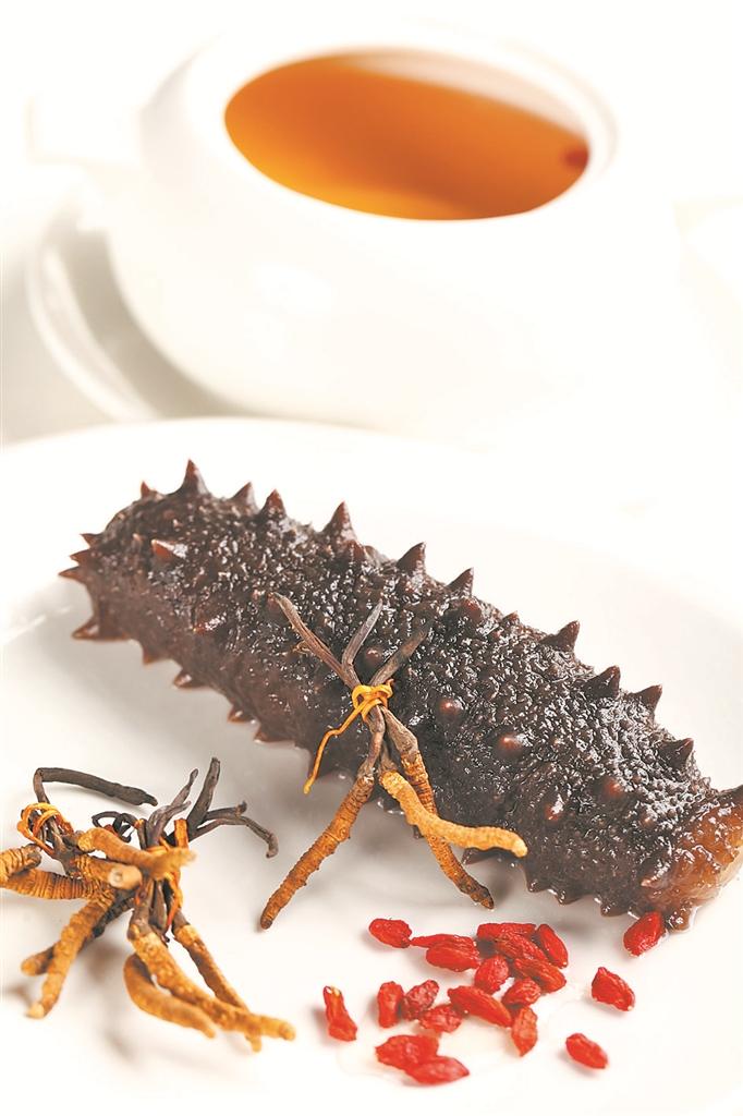 由于海参自带的味道较淡,为了不过于寡淡,中餐大厨李明师傅建议,在烹煮海参时,可以适当加入一些能增味的食材,例如新鲜的蔬果、肉材,或是五谷杂粮,又或是药膳兼用的补身汤料。以炖汤为例,在备料时,可以选用有着补肺平喘、止咳化痰等食效的虫草作为配料。同时,为增汤饮的甜味与鲜味,亦可再补添加虫草花、枸杞、红枣等各式暖色系汤料,有了这些自带补身效用的汤料加入,由此炖制的海参汤,尝起来鲜甜爽口,还有益胃生津、滋肝养肾等多种补身食效。