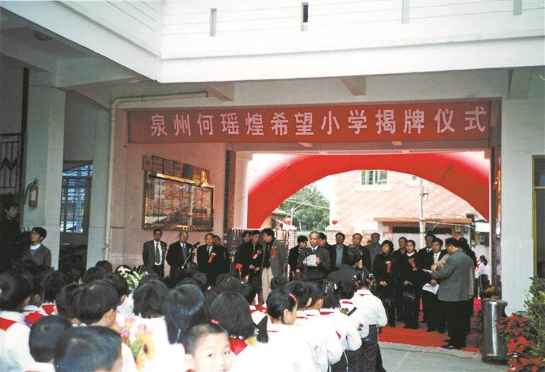 由于儿时家中入不敷出,无力承担学费,何瑶煌在少时便失去求学机会,只能望校门兴叹。这也使得其在心底埋下将来一定要振兴家乡教育、争取让每个孩童都有学上的美好心愿。为了不让像自己一样有求学梦想的孩子留有遗憾,何瑶煌亦不忘将发展家乡教育作为己任。