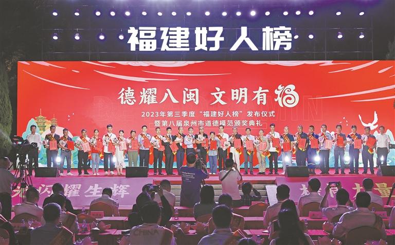 10月20日晚,“德耀八闽 文明有福”2023年第三季度“福建好人榜”发布仪式暨第八届泉州市道德模范颁奖典礼在泉州市府文庙举行。