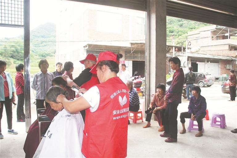 活动现场,老人们围坐在一起,你一言我一语聊着家长里短。“在家门口看表演,心里很欢喜,早上8点多就来了。”看着舞台上的文艺演出,67岁的唐阿婆掩不住脸上的喜悦。以前她并不知道重阳节是老人们的节日,今年村里为老人们举办了这样一场活动,她得以深入了解这个节日。“剪发不用钱,这样的活动非常暖心。”在一旁的义剪现场,刚刚剪完头发的胡阿婆高兴地称赞道。