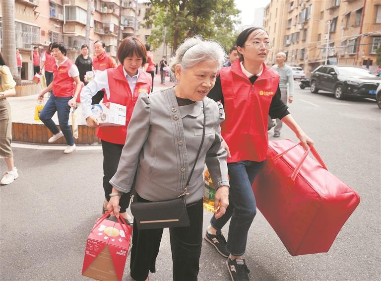 拎着沉甸甸的爱心礼包,老人们脸上洋溢着喜悦。考虑到慰问物资太多,老人们无法一次性带回家,爱心人士、志愿者与社区工作人员分头行动,帮忙将物资送回家。有几位老人因行动不便无法到现场领取慰问物资,爱心人士和志愿者也帮忙送上门。