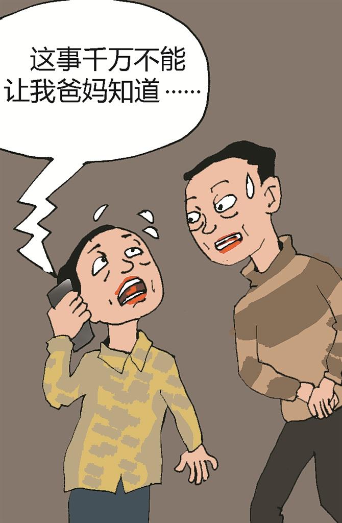 隔天早上,小伟又打来电话。我一接通,小伟就喊“奶奶”,我正纳闷他以前是叫我“外婆”,咋改口呢?还没等我细想,他就说:“奶奶啊,我闯大祸了。”原来,昨晚他同学请他去外面吃饭喝酒。他同学将一男子碰倒在地,对方要打他同学,他去劝架,不小心将对方推倒,对方头部流血。他们需要赔对方医药费,他出10万元,他同学出15万元。我叫他赶紧让他爸妈去处理这件事,可他却急了,说不能告诉他爸妈,若让他爸妈知道,他就要去死。我一下子慌了,他是独生子而且正处在叛逆期的年龄,如果确实想不开去寻死,我女儿该怎么办?我跟他说我没那么多钱,可他一直让我帮忙,还说这件事也不能让学校知道,学校知道了就要开除他,最后他也只能去死。小伟还说,10万元就当作向我借的,以后他会把钱还给我,而且这件事只能我和他知道,不能泄露出去,否则他就去死。