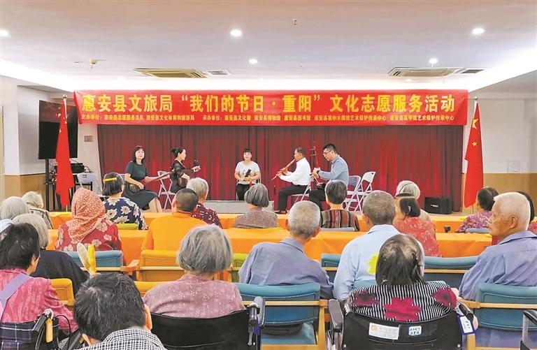 日前,惠安县举办“重阳秋色暖 敬老情更浓”重阳节文化志愿服务活动。该活动由惠安县文旅局等单位联合举办。图为老人们在观看精彩的南音节目表演。