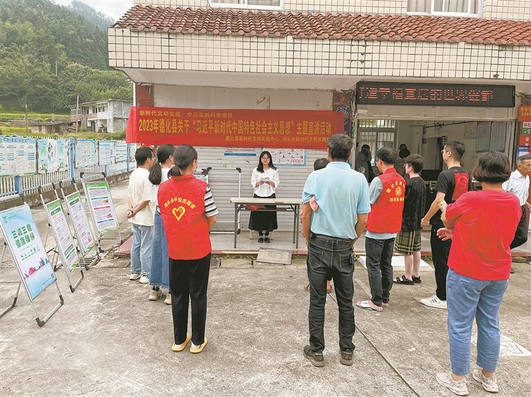 近日,德化县汤头乡以一月一次的爱心义诊活动为载体,在汤头村开展习近平新时代中国特色社会主义思想主题宣讲活动。汤头乡新时代文明实践所青年理论宣讲员以“唠家常”的方式,向大家讲述亲历故事和身边典型,用“家常话”讲出“大道理”,用“身边事”讲好“国家事”。