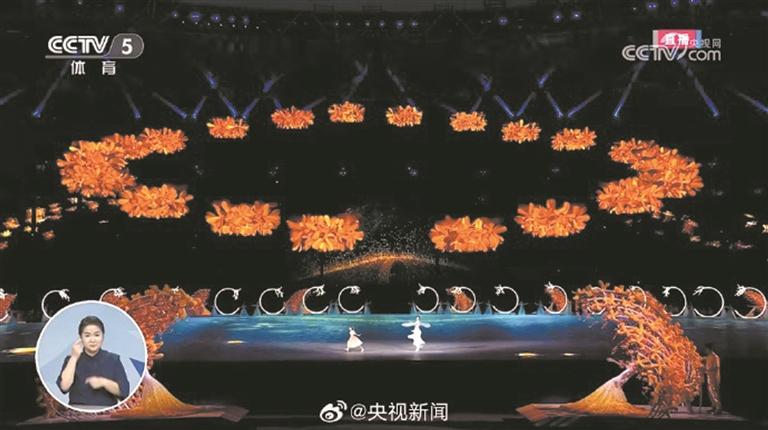 昨晚的“大莲花”,处处见桂花,时时闻得到桂花香。一朵“金桂之花”到22组金桂花团,从分散到汇聚,时而形成流水,时而形成拱桥,最终在空中形成巨大的“金桂花冠”,向每一位运动员传递“逐梦折桂”的美好寓意。