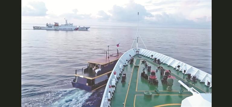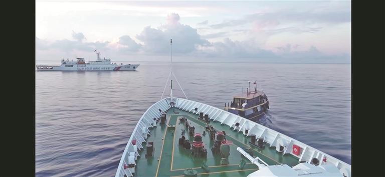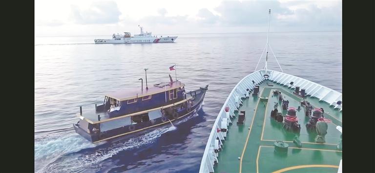 中方舰船依法依规拦阻管控菲方侵权挑衅船只