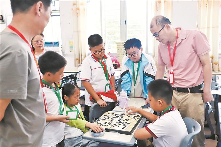 近日,2023年泉州台商投资区全民健身运动会第九届少儿围棋比赛在区第二实验小学举行,有甲、乙、丙3组近百名小选手参加。比赛中,小选手们我围你突、你冲我挡,在棋盘上展开激烈“厮杀”。图为比赛现场。