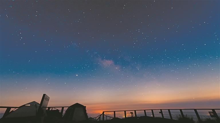 当太阳最后一点光芒消失,石牛山最美的夜就登场了,点点繁星已挂满整个天空,绚丽的银河出现在头顶,静谧璀璨却如此摄人心魄,如果能登山一次,集齐石牛山的日出和星空,一定会觉得不虚此行。