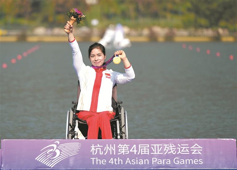 比赛开始后,谢毛三迅速划动桨叶,在观众的欢呼加油声中,她不到一分钟就率先到达终点,为中国队成功摘得杭州亚残运会首金。