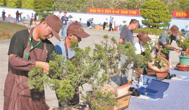 本报讯 (记者林铭珊 通讯员康庆平 颜祖相)为做大做强做优“四大经济”,在推动我省绿色经济高质量发展中彰显工会作为,助推福建省盆景产业在新发展阶段高质量发展,全面提升提高从业者职业技能水平。24日,第二届福建省盆景行业职工技能竞赛在永春开赛,来自全省各地的15支代表队61名选手同台竞技,一展身手。