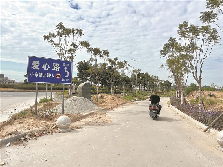 在这条路与成功大道的交会处,一条支路从成功大道下方下穿至对面老港村,路两侧还种有花草树木。记者看到路口的路牌上写着“爱心路”,路边还有一块石碑镌刻着碑志和捐资芳名录。“之前成功大道建好后,杨山村锦堂自然村到老港村的道路被截断,村民们反映,到老港村方向需要横穿公路,出行不便且极不安全。”李世仁说,2022年,在镇党委、政府支持下,杨山村党总支部、村委会、锦堂老年协会发出倡议,村民一呼百应,乡贤纷纷慷慨解囊,踊跃捐资54万余元。
