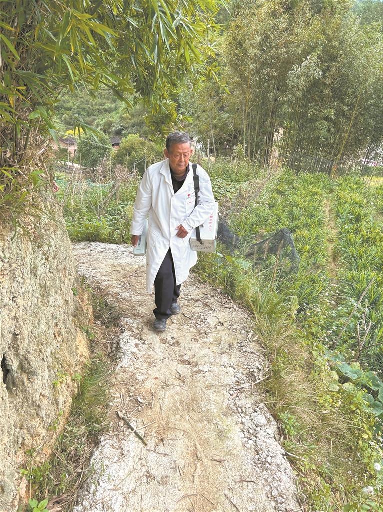 陈英强是猛虎村卫生所的乡村医生,从村委会得知有两户患病老人行动不便、家庭困难,他多年来便坚持义务上门,定期看望老人。“他们有需要,我随叫随走。”陈英强说,当了53年的乡村医生,村里老人们都互相熟识,患病无法到卫生所的老人们会打电话,他骑摩托车或步行上门看诊。