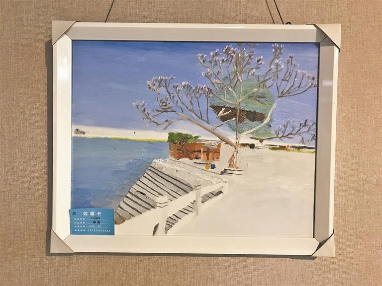 此次艺术展主题为“见证星禾少年的力量”,场地由三个小展厅构成,每个小展厅的墙上都陈列着精美的作品。小恒的丙烯画《秋》、小俊的剪纸《迎春》、小威的油画《东西塔》……每一幅作品都附有一张收藏卡,上面标注了作品的名称、类型、作者及联系方式。