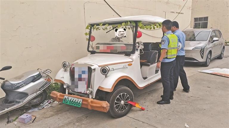 本报讯 (记者黄枫 通讯员庄小强 文/图)近段时间,在市区丰海路蟳埔社区路段部分低速电动四轮车违法上道路行驶。这些电动四轮车看似出行灵活、经济实用,却存在车辆任意停靠、无牌上路,驾驶人无证驾驶等交通违法乱象,不仅破坏正常交通秩序,还极易引发道路交通事故。对此,丰泽交警大队开展专项整治行动,依法查处违法上路的低速电动四轮车。