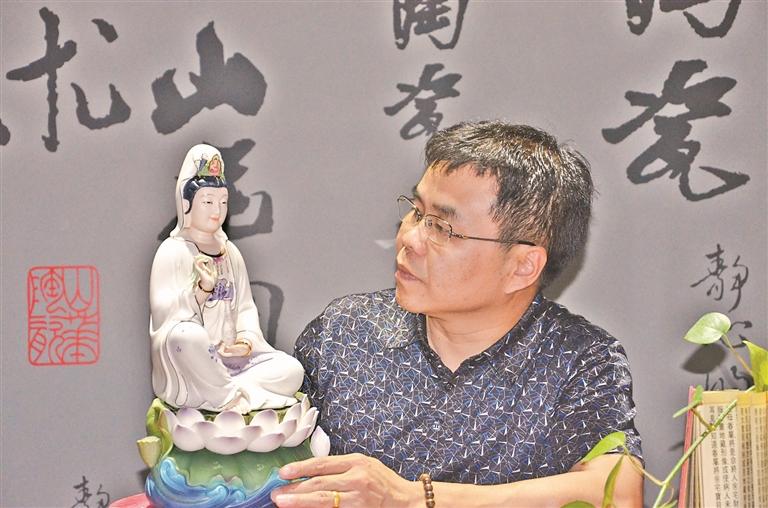 “上个世纪末,我就开始探索现代白瓷雕塑如何在继承中实现新的突破,汲取德化古代陶瓷及敦煌彩画艺术精华,形成了独特的‘山花彩’技艺。”郑雄文说,“山花彩”加彩技艺将德化白瓷与佛造像相融合,拓展延伸了应用空间与范围。
