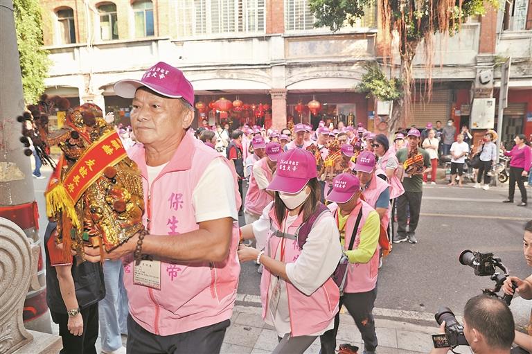 24日,台湾宜兰冬山慈济宫120人到泉州花桥慈济宫谒祖进香。据悉,这是今年花桥慈济宫迎来的最大进香团。花桥慈济宫位于鲤城区中山南路北段西侧,始建于宋绍兴年间,祀北宋泉州名医吴夲,闽台尊称吴真人、保生大帝。(陈英杰 摄)