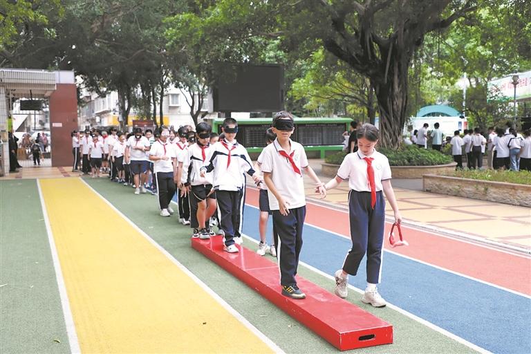 本报讯 (记者陈森森 通讯员饶燕燕 文/图)为了提高学生的心理素质,促进人格健全发展,近日,泉州市第二实验小学开展“信任之旅 感恩之行”的心理素质拓展活动。活动中,同学们两两搭档,一个同学用眼罩蒙上眼睛扮演“盲人”角色,另一个扮演“拐杖”角色。