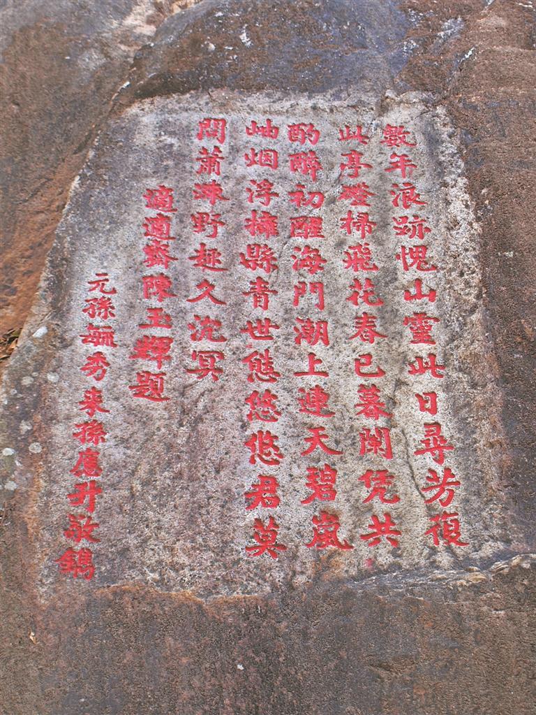 科山靠近县城,交通便利,风景秀美,深受文人墨客喜爱。科山古道最高处有一座喜雨亭,旁边山石上刻有明代进士陈玉辉的题诗:“数年浪迹愧山灵,此日寻芳复此亭。磴扫飞花春已暮,阑凭共酌醉初醒。海门潮上连天碧,岚岫烟浮拥县青。世态悠悠君莫问,萧疏野趣久沉冥。”这是当年他坐在喜雨亭看到的县城景色。今时今日,坐在亭中,依然可以看到岚岫烟浮的美景。