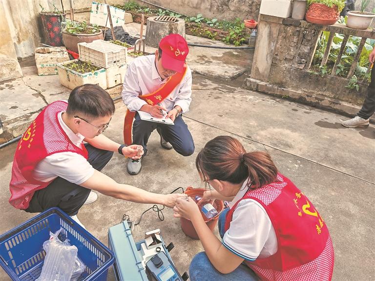 活动当天,共建支部的党员志愿者来到永春县五里街镇西安社区埔头村,向村民进行水质科普。就村民所关心的饮用水卫生知识、水质评价简便方法、饮用水卫生要求、水质改善等方面知识,志愿者进行了详细讲解。活动中,根据村民意愿,一行人对当地饮用水井等饮用水源的浊度、色度、pH等日常指标进行现场检测,将有代表性的水样留样保存,带回实验室进行深入检测,以准确的检测数据为村民提供科学的饮水建议。
