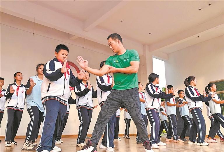 “刣狮(狮阵)是集兵战阵法和武艺训练于一体的传统体育表演形式……”日前,在石狮市第五中学操场,来自石狮市东园狮阵武术馆非遗传承人一边讲解,一边把健身武术基本功教授给学生。日前,2023年石狮非遗(泉州刣狮—石狮狮阵)文化进校园活动在石狮市第五中学开展,活动让广大学生亲身感受了石狮浓厚的狮文化。今年以来,石狮市以泉州刣狮中的石狮狮阵文化为主题,邀请非遗传承人到校,让学子们直接体验石狮非遗文化的魅力,为石狮非遗文化提供了一个集中展演的舞台,更让石狮非遗文化“活了起来”。