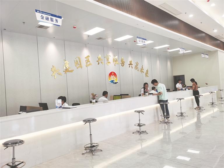 工业园区政务服务中心内设立企业开办、工程审批、水电气网、金融服务、综合服务等5个窗口 (郭雅思 摄)