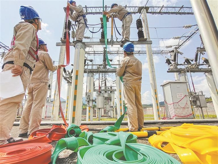 为加快变电站的设备隐患整治效率,切实提升永春县电网供电可靠性,近日,在永春县35千伏介福变电站内,国网永春县供电公司组织变电检修班工作人员对站内35千伏II段母线及所属间隔裸露导线进行绝缘包封自主作业,防止飞鸟、松鼠等小动物以及站外漂浮物影响到主网设备安全运行。