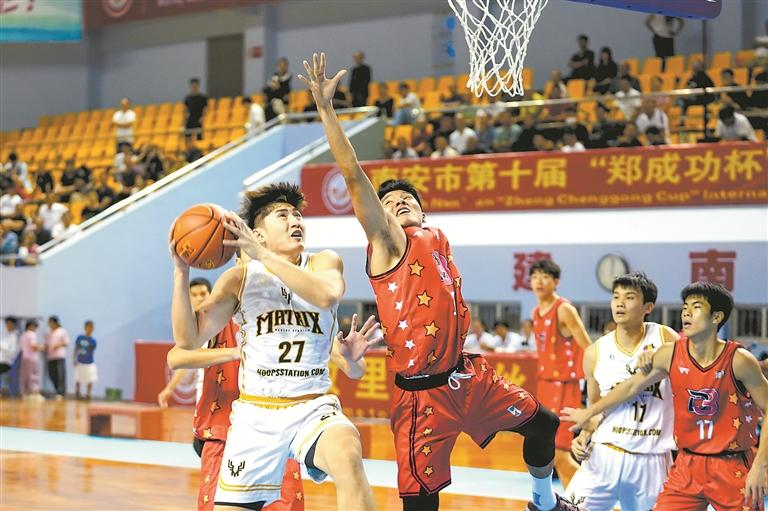 日前,由南安市政府、福建省篮球协会主办的南安市第十届“郑成功杯”国际男子篮球赛圆满落幕。本届比赛共有8支球队、144名球员参加,经过5天20场精彩角逐,最终南安诺华聚力队夺得冠军,马来西亚森州金群利金鹿队获得亚军。图为比赛现场。