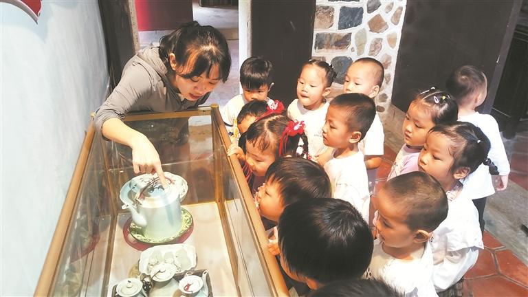 本报讯 (记者陈灵 黄耿煌 通讯员黄海玲 文/图)南安金淘镇毓南村自古孝道成风,成为远近闻名的“孝道之乡”。今年7月,本报报道了毓南村顺应时代发展,充分挖掘整理孝道文化资源,成立毓南孝道文化馆(详见本报2023年7月7日第七版)。文化馆开馆以来,吸引不少游客到馆参观,更有不少师生来此研学。30日上午,南安市金淘第一幼儿园组织秋游活动,师生们一同走进家乡古厝毓南孝道文化馆。